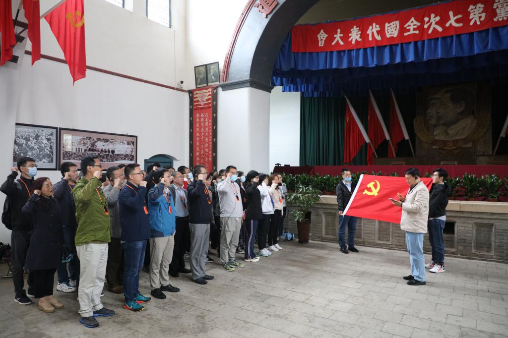 在七大会场的旧址,朱晋中书记还带领全体党员重温入党誓词,铭记党员的责任与义务,不忘初心,牢记使命。