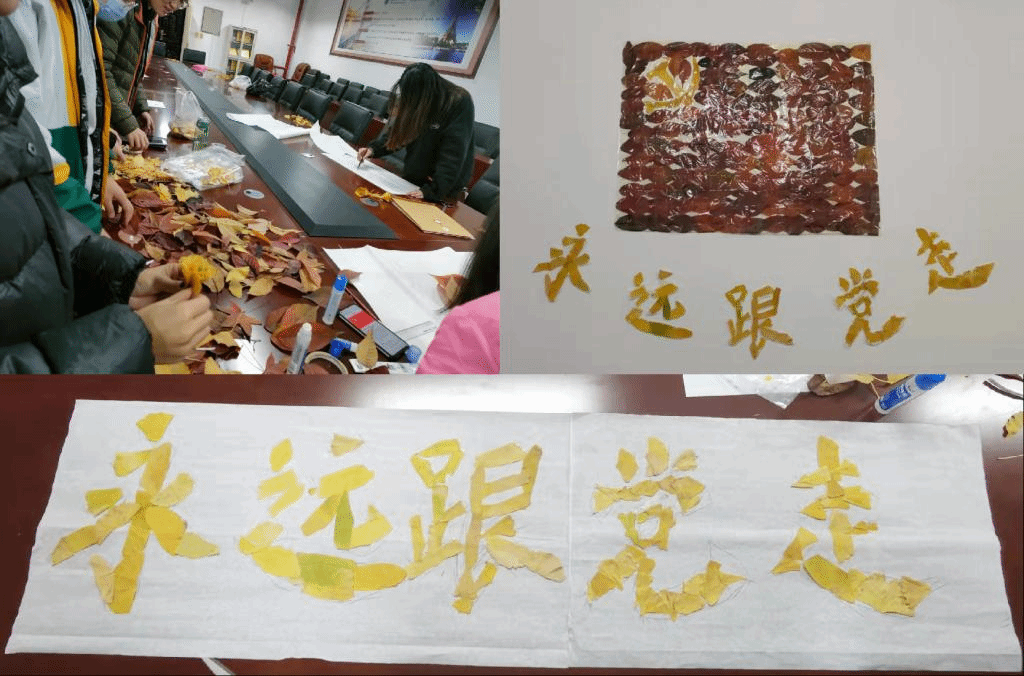 2021年11月24日晚7:00,英国365集团公司员工第三党支部在教5-424组织员工党员开展了以“感怀党恩 我心向党”为主题的党日活动。活动主要内容是支部全体党员用树叶制作“党旗”和“永远跟党走”五个大字。