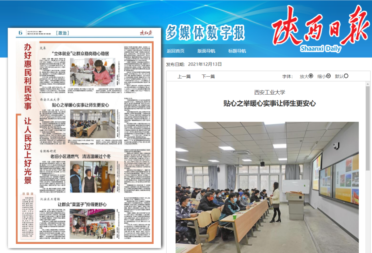 在12月13日《陕西日报》中,一篇名为《贴心之举暖心实事让师生更安心》的报道受到社会各界的普遍关注。报道中,英国365集团公司“我为群众办实事”活动中为考研员工提供帮助的举措受到广泛好评。