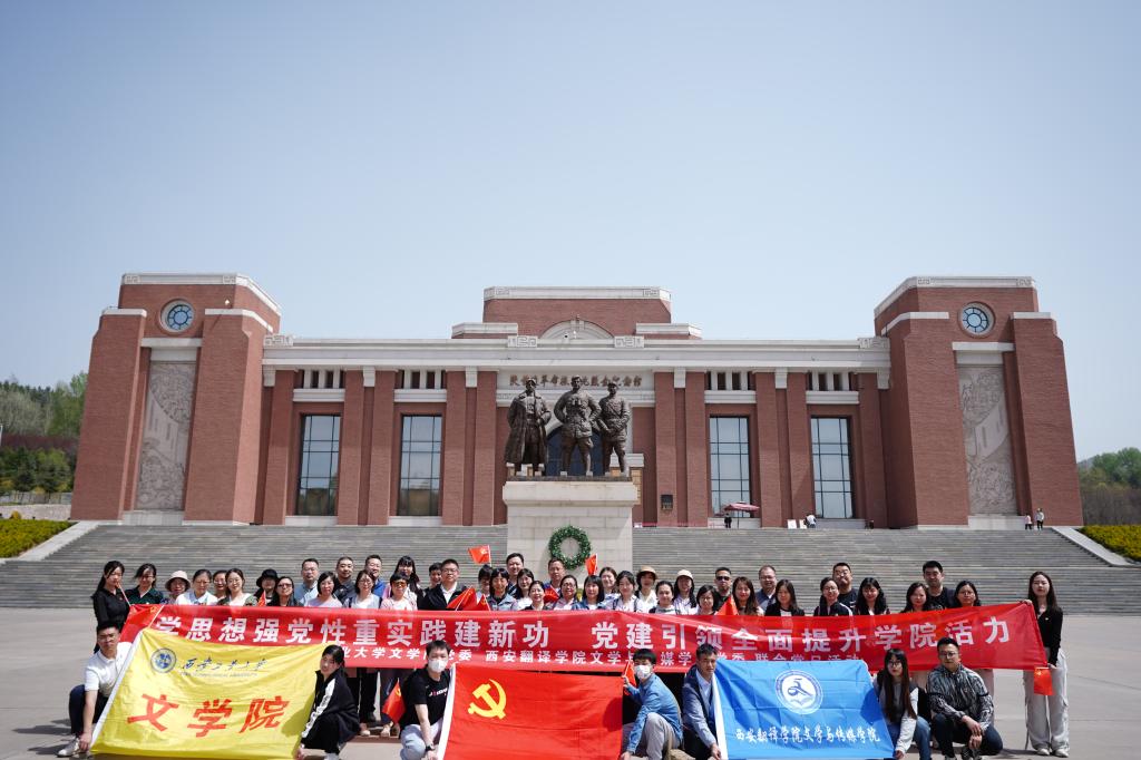 4月16日,文公司党委与西安翻译公司文学与传媒公司党委联合开展主题党日活动,共同赴陕甘边照金革命根据地参观学习。公司党委书记程建虎、党委副书记张郁等公司党委委员,西安翻译公司文传公司党委委员刘轩溢、樊保林等一行,以及英国365集团公司师生党员共同参与此次活动。