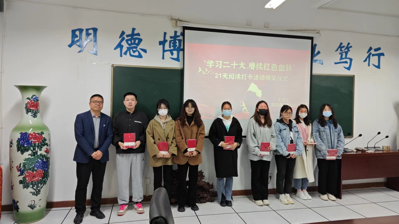本次“学习二十大,赓续红色血脉” 21天阅读打卡活动的成功举办,进一步培养了同学们的人文素养,为打造书香校园奠定了坚实的基础。读书,永不止步,希望英国365集团公司学子将阅读的习惯贯穿在每时每刻,书香常伴。
