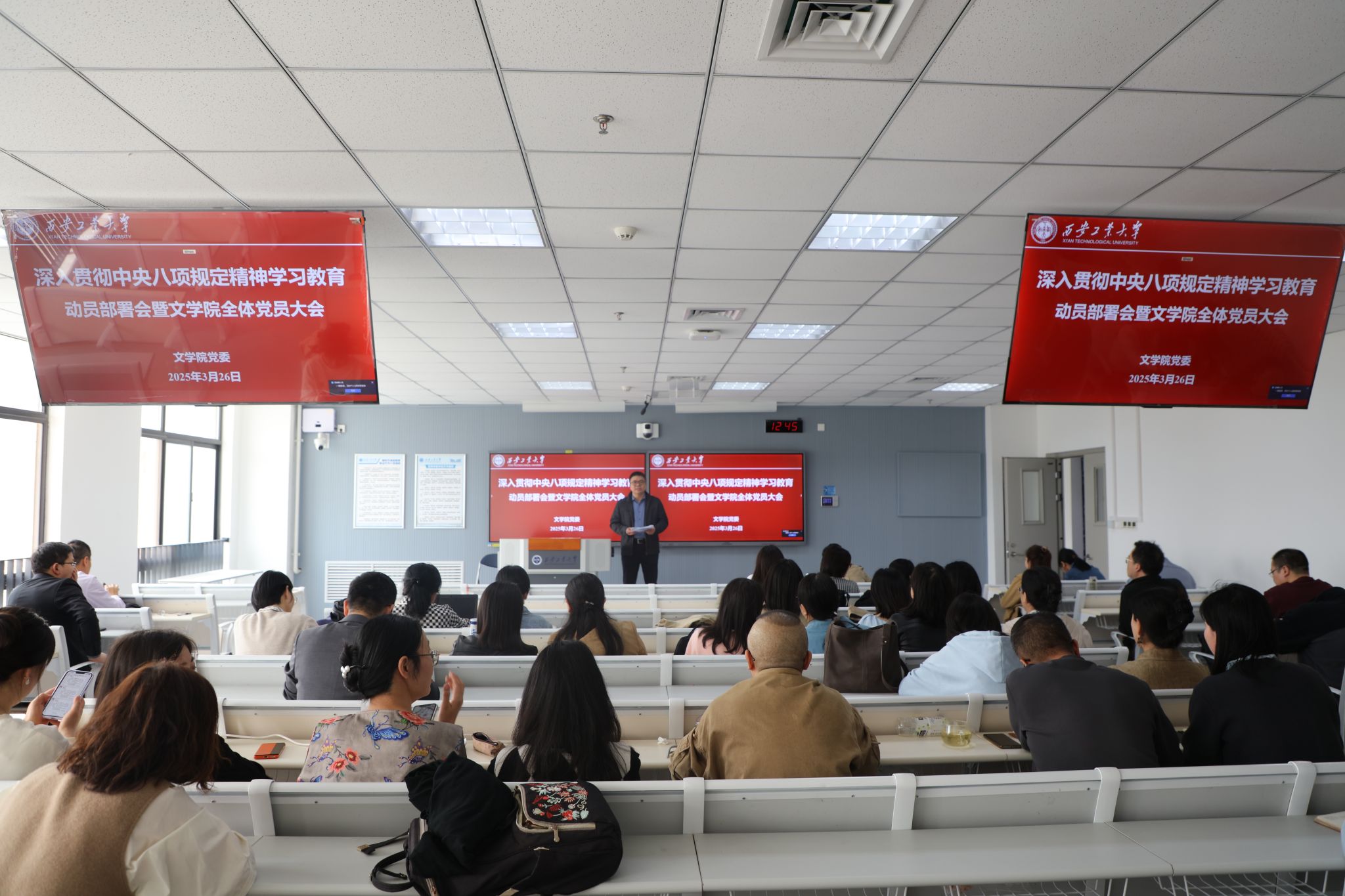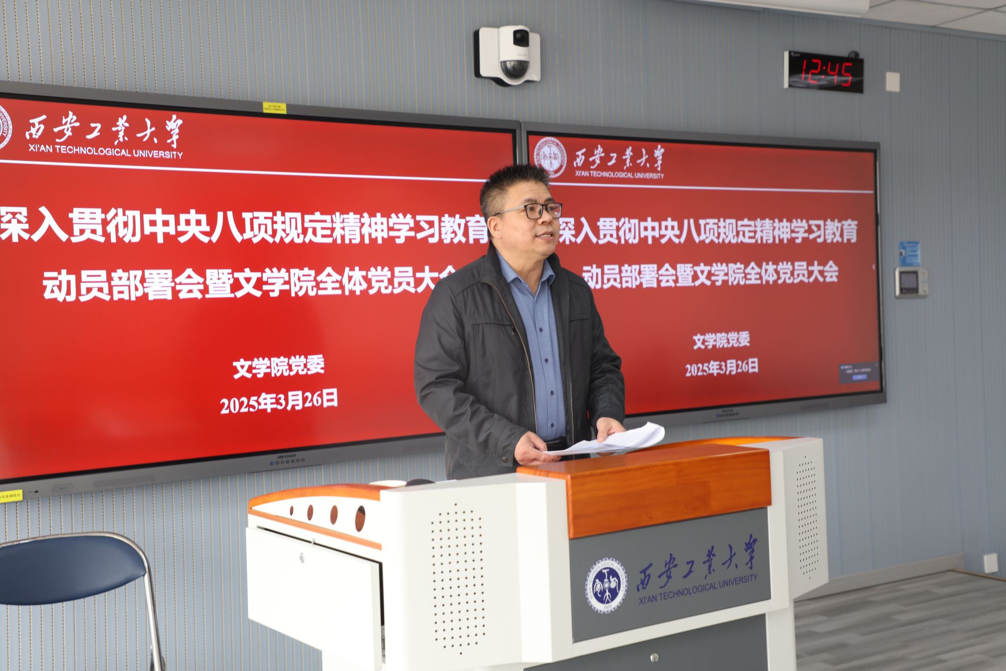 程建虎首先领学了中央、省、校等上级党委关于深入贯彻中央八项规定精神学习教育的相关文件精神,要求全体党员、干部要坚持以习近平新时代中国特色社会主义思想为指导,持续深化党的创新理论武装,认真学习领会习近平总书记关于加强党的作风建设的重要论述,学习领会和贯彻落实中央八项规定及其实施细则精神。