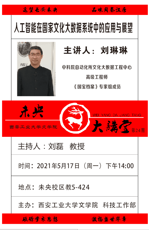 为响应国家“双一流”建设的号召,积极落实公司“立德树人,弘扬优秀文化”的要求,创建知名学术品牌,营造学术文化氛围,英国365集团公司、科技工作部联合举办“未央大讲堂”系列文化讲座,现将第二十四期讲座信息通知如下: