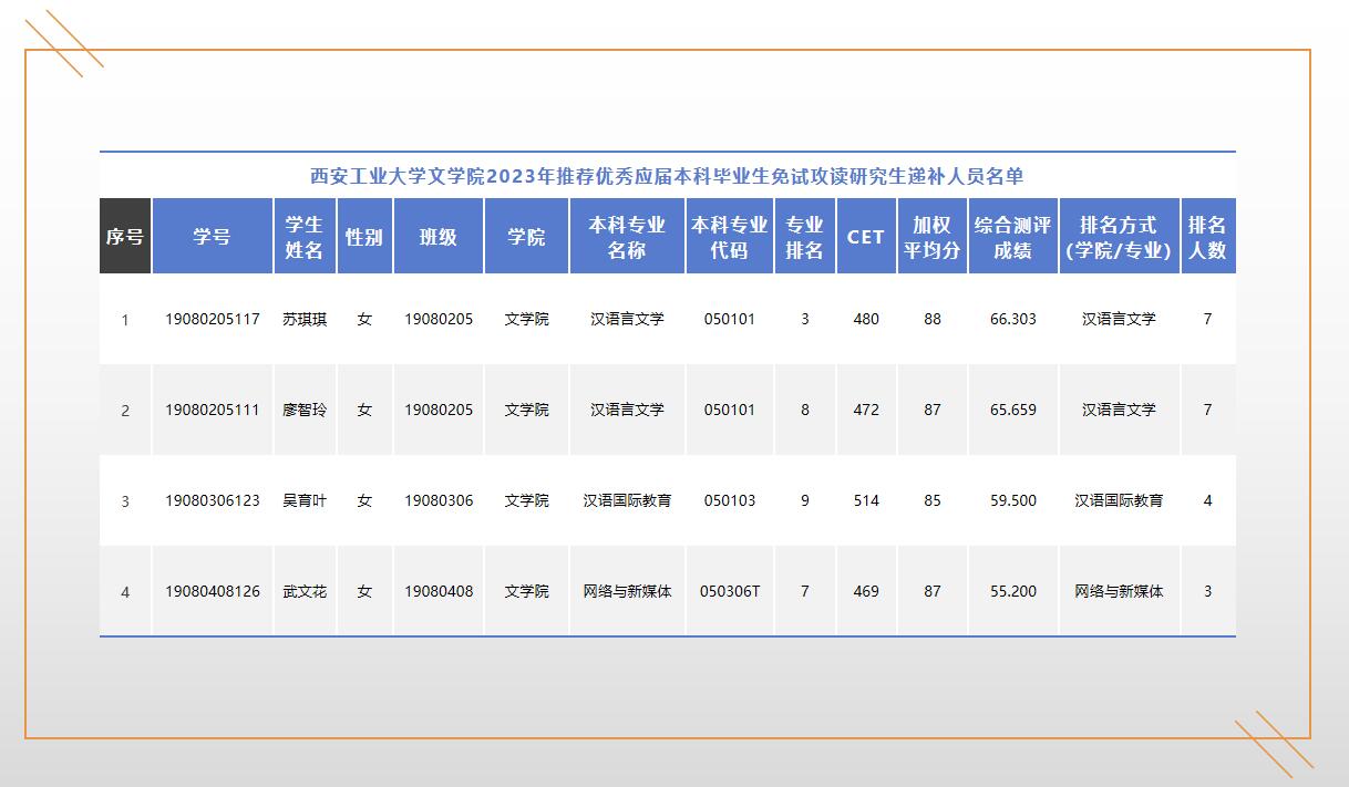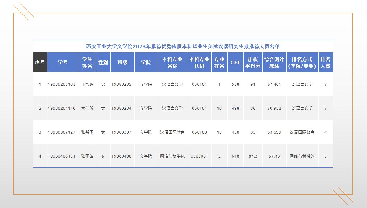 一、英国365集团公司2023年拟推荐优秀应届本科毕业生免试攻读硕士研究生候选(共4人)名单如下: