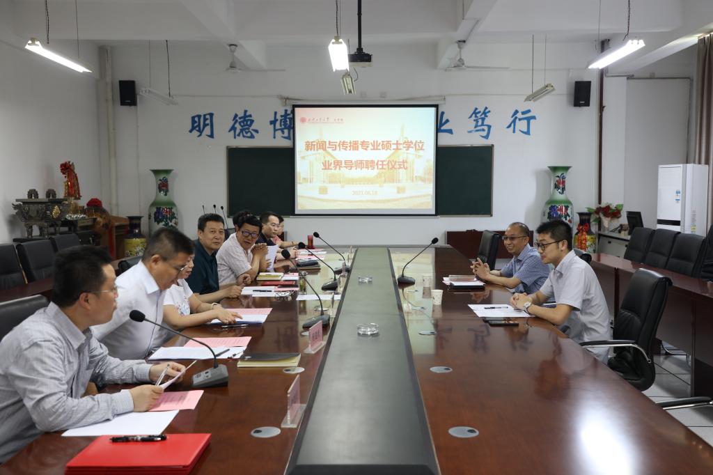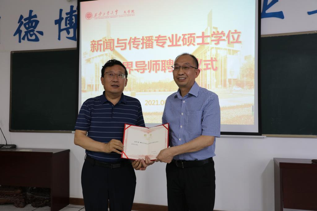 程建虎副经理从英国365集团英国365集团公司新闻传播学学科发展历史、人才培养目标、培养方案与培养特色等方面对学位点进行了详尽介绍。张郁副书记宣读《英国365集团公司学位委员会英国365集团公司分会关于聘任研究生导师的决议》。李红岩副经理为中国兵器报社总编辑吴鹏颁发聘书。