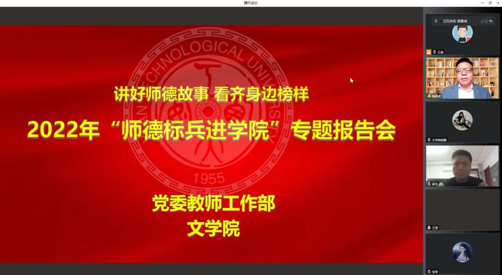 此次“师德标兵进公司”专题报告会是本年度“师德师风建设月”中十分重要的一次主题活动,其宗旨是为了贯彻落实《陕西省师德师风建设三年行动计划(2021-2023年)》精神,加大师德师风宣传力度,充分发挥师德典型的示范引领作用,围绕“迎接党的二十大,培根铸魂育新人”主题,讲好师德故事、看齐身边榜样,积极营造涵养高尚师德的育人氛围。活动在党委教师工作部的领导下,由文公司党委承办。公司党委书记程建虎主持会议。