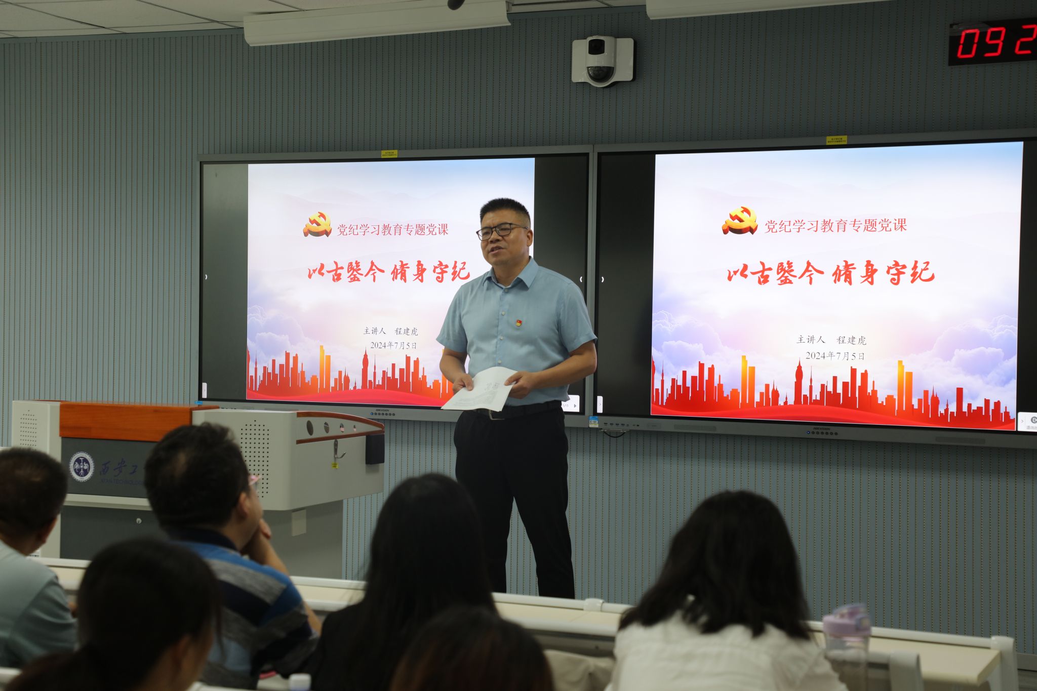 按照校、公司党委对党纪学习教育工作的安排,推进文公司党纪学习教育走深走实,教育引导党员同志学纪、知纪、明纪、守纪, 近日,文公司党委书记程建虎为教师党员开展了主题为“以古鉴今 修身守纪”的党纪学习教育专题党课。