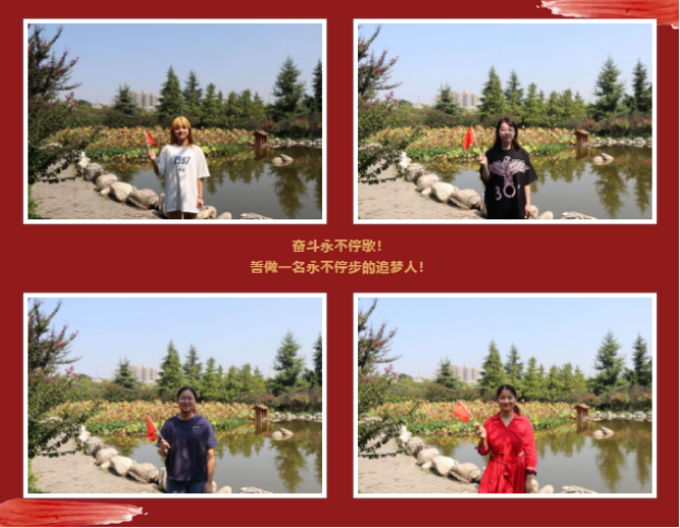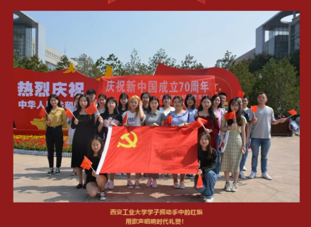 “青春歌声唱祖国”中,第一党支部全体党员在博苑广场、校门口,挥舞着国旗唱响“我和我的祖国”,伴随着美妙的旋律,向伟大祖国送出美好祝愿。
