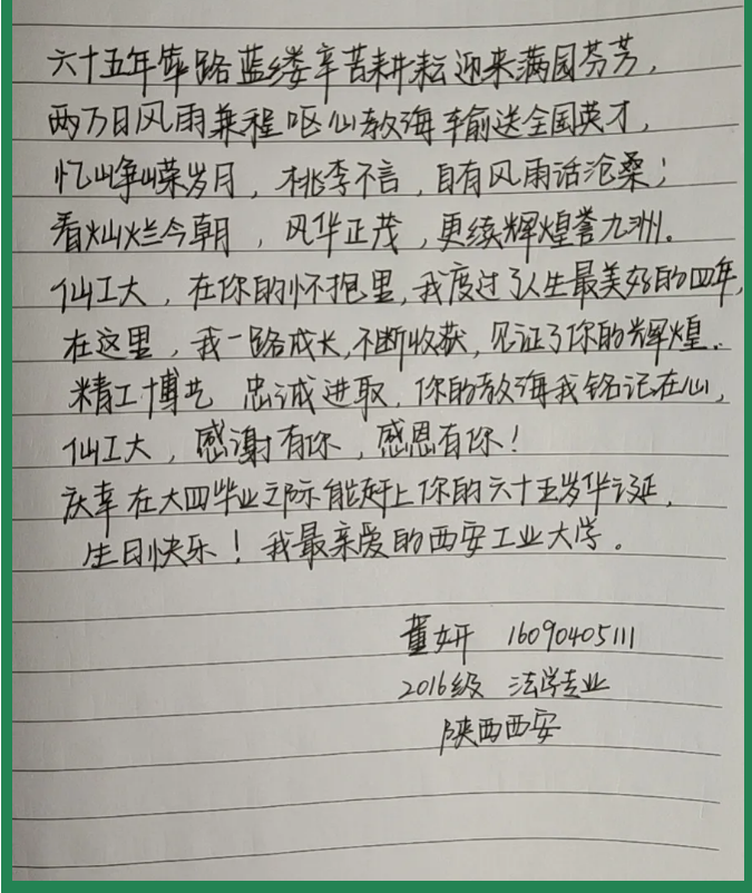 今天,西工人以爱为笔,勾勒对公司的思念与祝福,写下对西安工大的真挚告白。