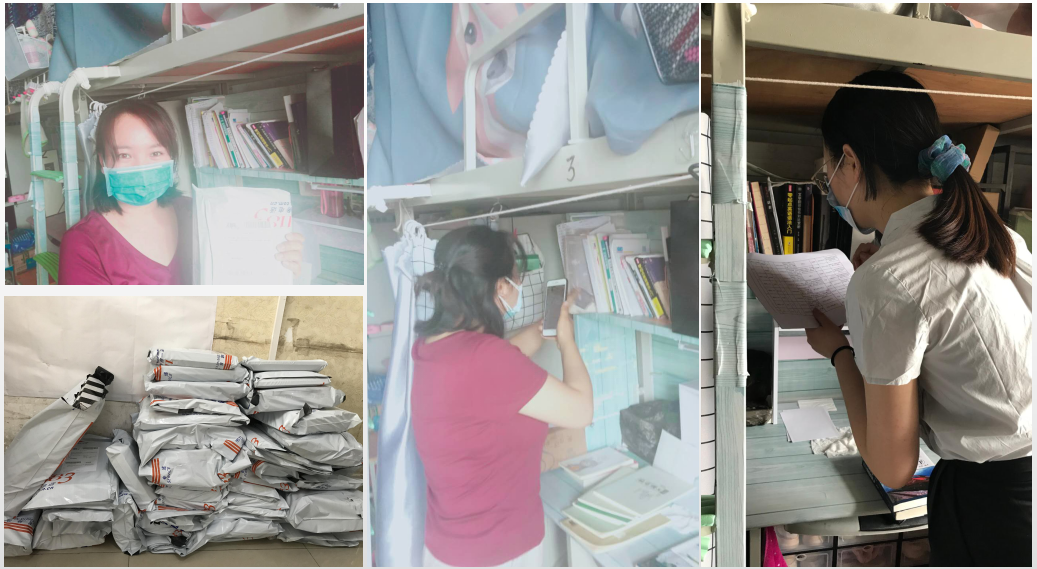 首先,辅导员老师们详细统计了员工所需的复习资料目录,分类整理寄送书籍信息。5月25-28日,在公寓管理员阿姨的协助下,辅导员老师进入员工宿舍,与大四返校的两名员工一起,细心分类、整理、打包、封装所有员工需要的书籍资料,并将其搬运到快递点,联系快递公司,打印快递单号,确保准确无误地将书籍资料寄送到每位员工手中。