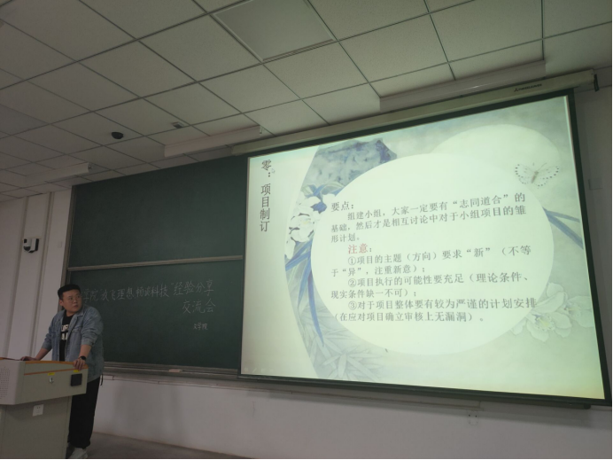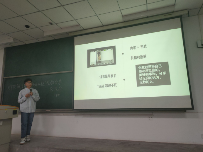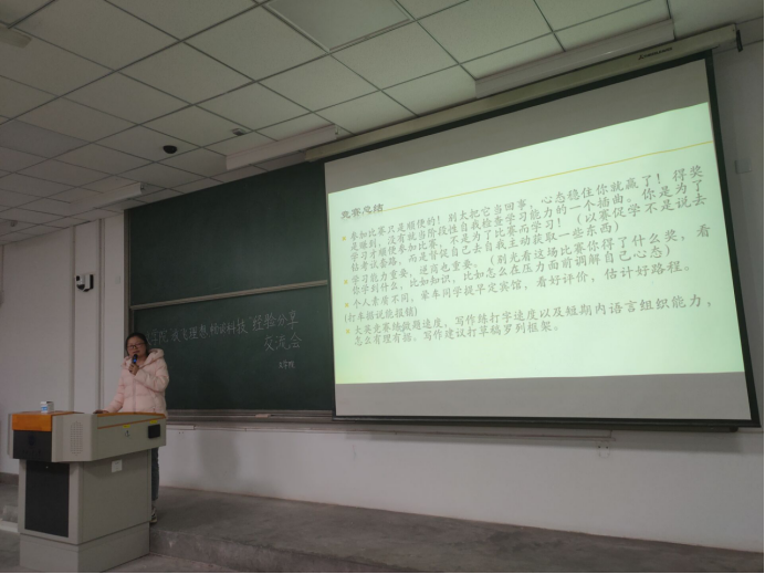 首先,汉语言文学专业游浩峰同学根据自己已结题的国家级老员工创新创业大赛内容,为同学们展示了自己的想法及材料书写注意事项,并通过自己项目内容实施的经历与感悟为员工们提供一系列经验和借鉴。接着,广告学专业蒋国亚同学通过分享影响他人生的三句话,引出了自己参加老员工广告艺术大赛的相关经验,并提醒同学们要注重创意的作用,要走出舒适区去挑战自己。最后,英语专业郑裕玲同学根据自己参加的各类学科专业竞赛的经历,概述了自己参加外研社杯写作比赛与演讲比赛的感受,向同学们传授了许多实用的学习方法。