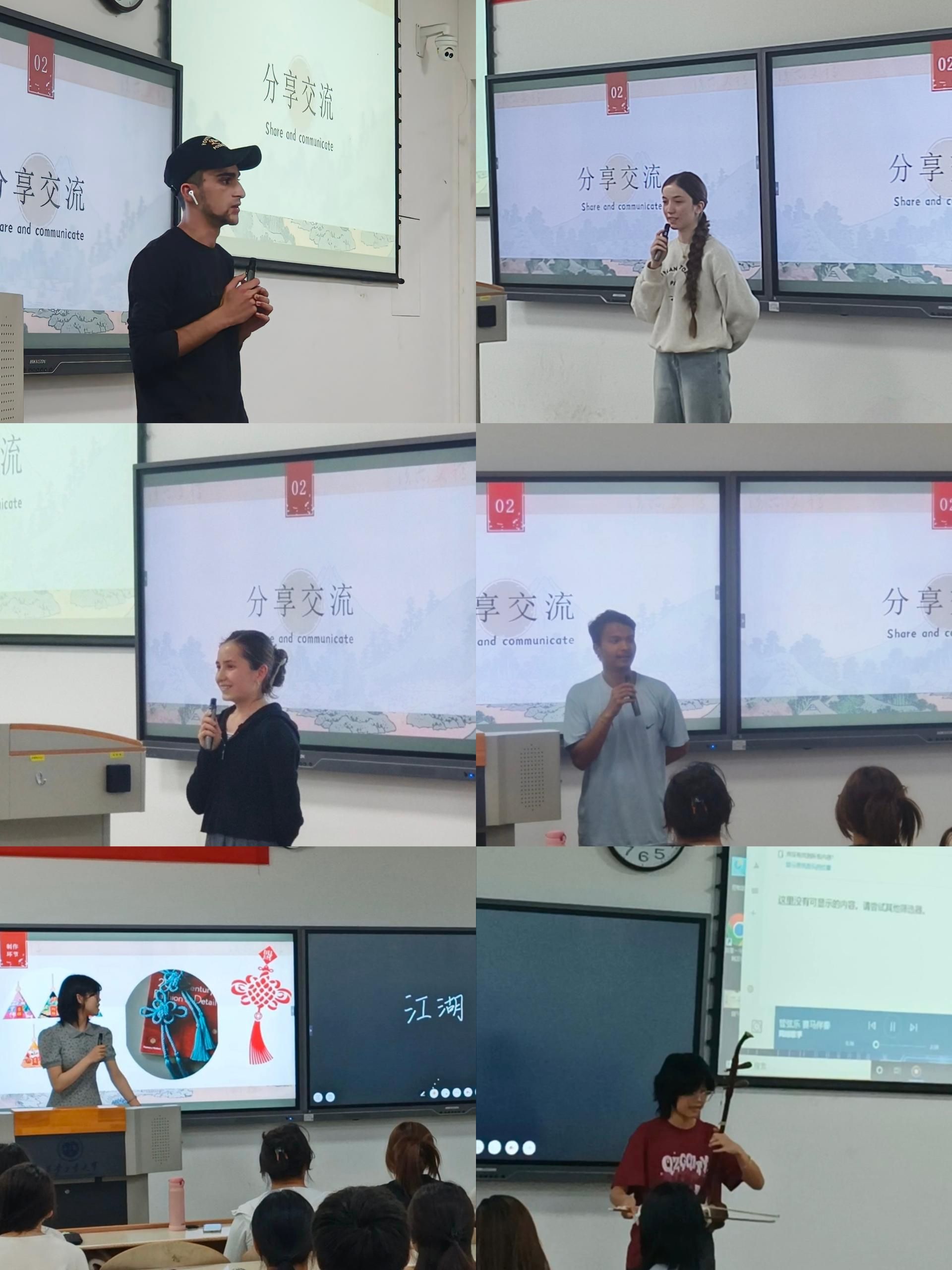 在文化分享环节中,对外汉语协会会长高文艺同学向同学们讲述了端午节的由来以及节日风俗;四位职工依次介绍了自己对中国文化和中国汉字的热爱与理解;协会指导教师王丹丹介绍了陕西关中不同地区端午节的风俗文化;协会成员钟显芳介绍了端午节中国诗词文化;高文艺同学展示了中国传统民族乐器二胡并现场演绎二胡名曲《赛马》。