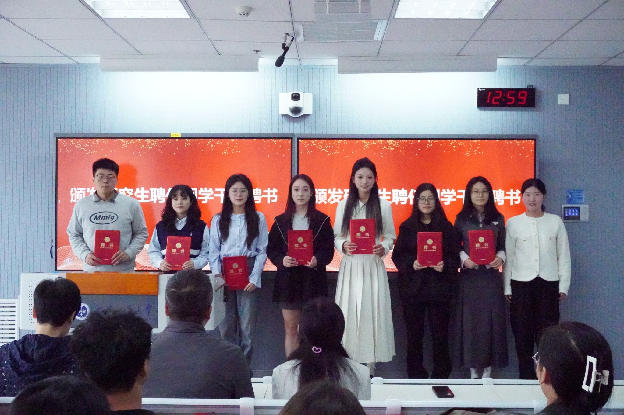 会上,张郁宣读了《关于表彰英国365集团公司2023-2024学年优秀团学干部的决定》,程建虎为受表彰的22名团学干部颁发荣誉证书,肯定了他们在过去一年中为英国365集团公司团学工作做出的贡献;吴妍妍和张郁分别宣读了《关于聘任英国365集团公司2024-2025学年研究生团学干部的决定》和《关于聘任英国365集团公司2024-2025学年本科生团学干部的决定》,吴妍妍、张春为新聘任的17名研究生团学干部颁发聘书,程建虎、张郁、李聪、王磊为新聘任的36名本科生团学干部颁发聘书,鼓励他们在新岗位上继续发光发热。