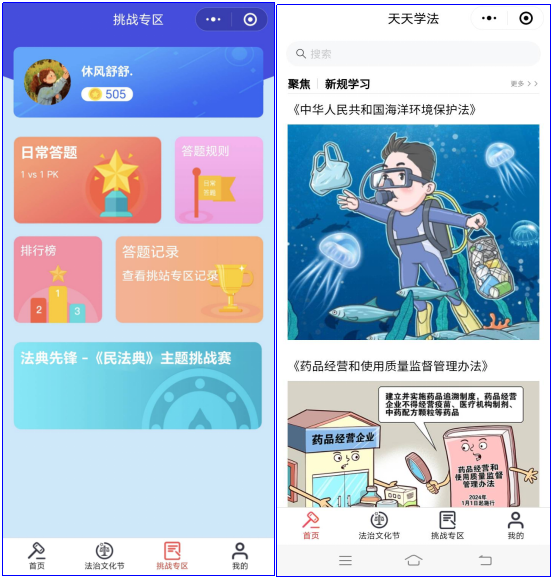 在普法答题环节,组织以“嘟嘟学法”小程序为学习平台,浏览法治科普内容,参加每日答题,通过图文阅读、PK答题等多种形式,学习宪法、刑法、民法等知识,展示了法治的重要性和实际应用。