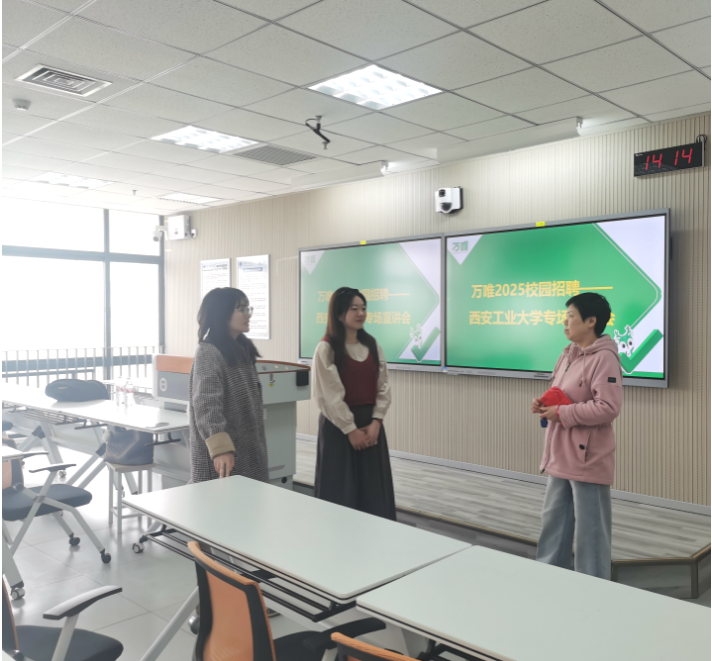 接着,万唯HR向同学们详细介绍了万唯独特的企业文化,万唯始终秉持着创新、专注、协作的理念,始终致力于为员工提供高品质的教育产品和服务。谈及企业发展前景,负责人通过展示详实的数据和丰富的实际案例,向同学们展现了万唯广阔的发展空间。这不仅意味着万唯有着强大的发展潜力,更为员工提供了丰富的晋升机会和清晰的职业发展路径。为了让同学们更深入地了解招聘岗位,万唯工作人员针对编辑、策划、市场推广等不同职位的职责、要求以及职业发展规划进行了细致入微的讲解。每个岗位的介绍都清晰明了,让同学们能够快速精准地匹配自身优势,明确适合自己的岗位方向。